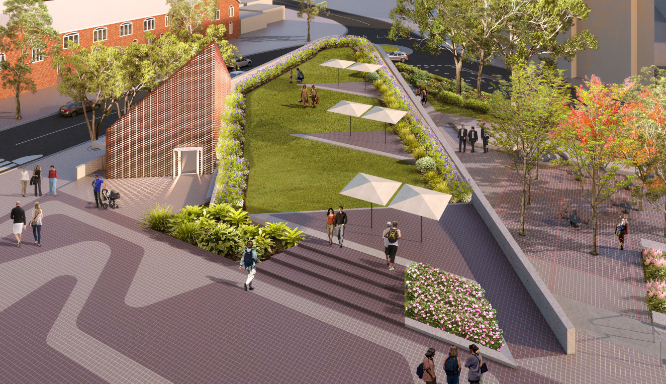 The project site is the largest site identified for the provision of community floor space to meet this target. Through its unique design, existing public parking will be moved underground and new open and green public spaces will be integrated at ground level.